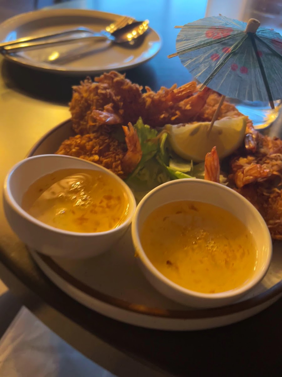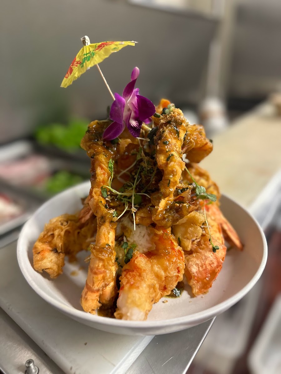We got the crab fried rice, kalamari, steak salad, khao soi, food was amazing! Service was excellent and timely, we got outside seating and we even received water bowls for the dogs! Would come here again and soon